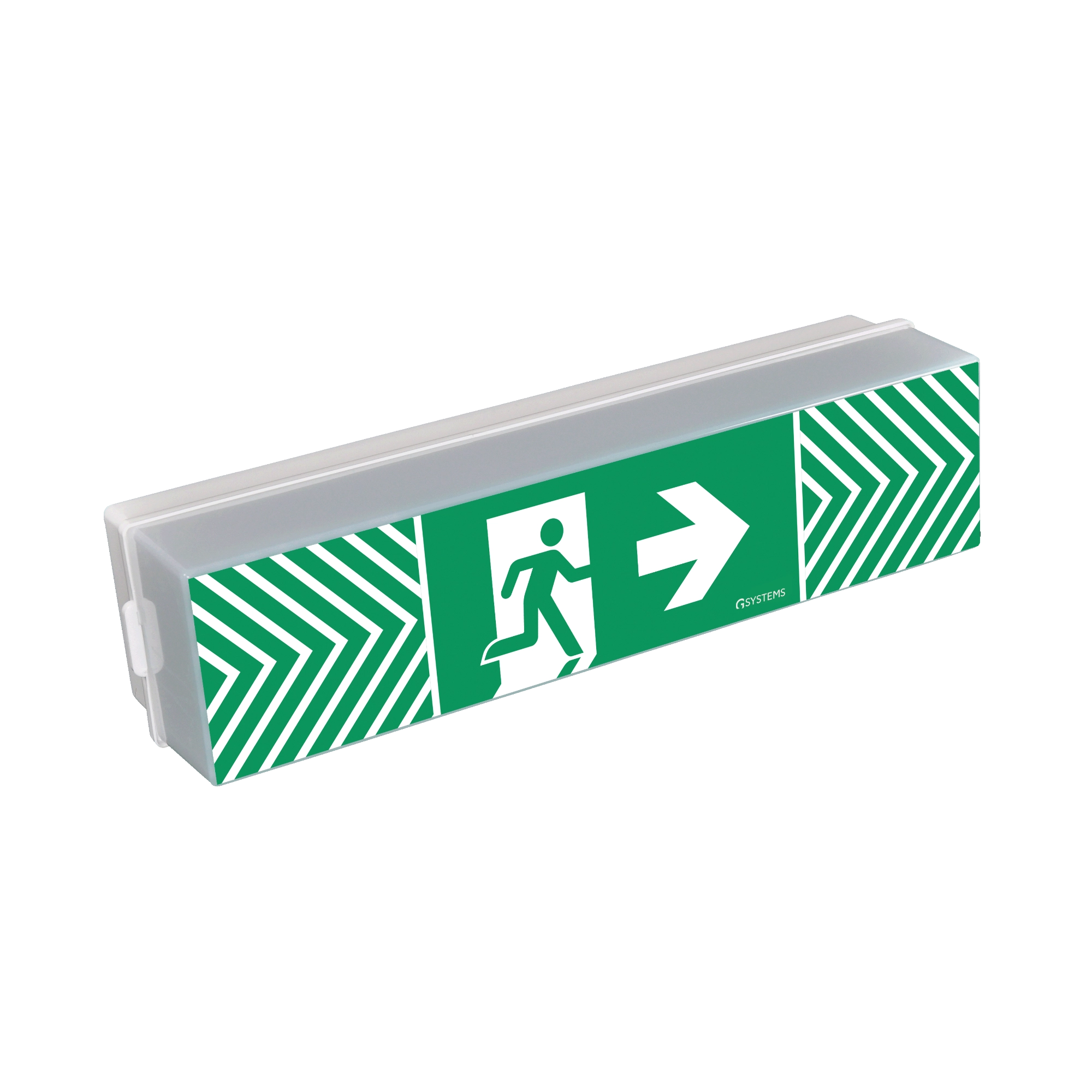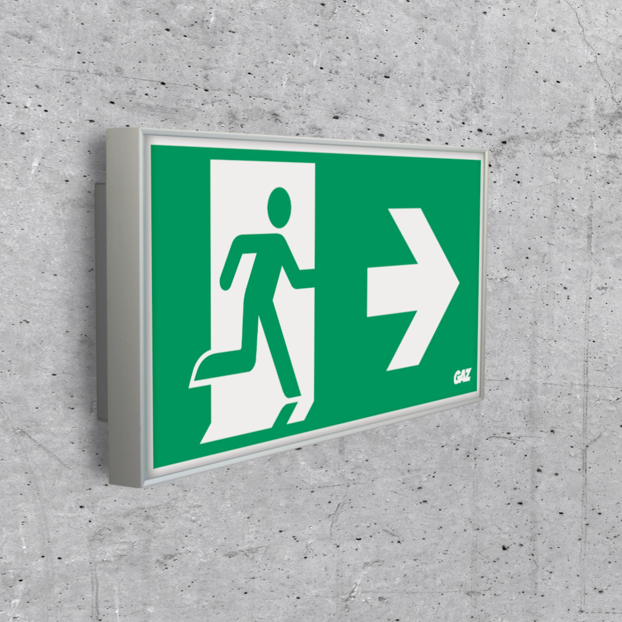 Der enthaltene Piktogrammsatz ermöglicht die Anpassung der Fluchtrichtung an die jeweilige Gebäudesituation. Dadurch lässt sich die Rettungszeichenleuchte projektbezogen konfigurieren und unterstützt eine konsistente Kennzeichnung der Fluchtwege innerhalb eines Gebäudes.