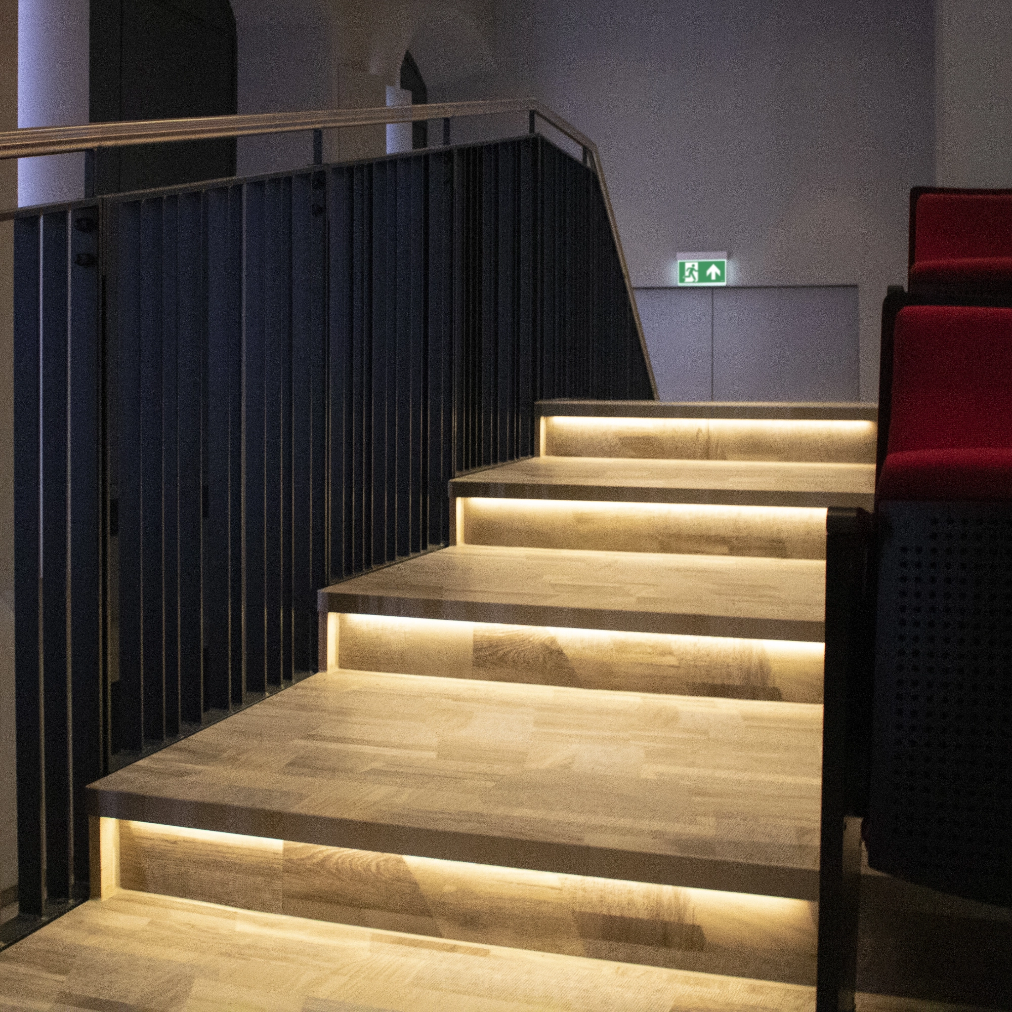 Die Kombination aus dekorativer Beleuchtung und Sicherheitsfunktion reduziert die Anzahl sichtbarer Komponenten und unterstützt ein konsistentes Gestaltungskonzept. Besonders in hochwertigen Innenräumen oder öffentlich zugänglichen Bereichen entsteht so eine präzise Lichtführung mit hoher gestalterischer Qualität.