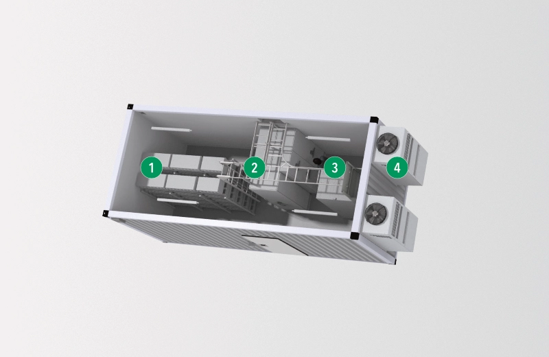 · integrierte USV-Lösungen in verschiedenen Abstufungen / Redundanzen von 25 kW / 30 kW / 50 kW / 100 kW möglich