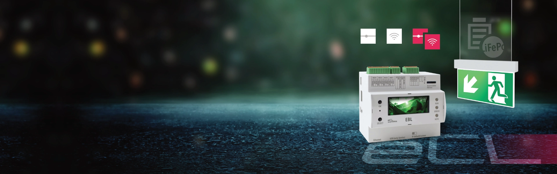 Steuer- und Überwachungssystem für Einzelbatterieleuchten zur zentralen Verwaltung und Kontrolle von Notlichtanlagen mit Webserver und IP-Schnittstelle für einfache Inbetriebnahme sowie skalierbarer Systemstruktur für unterschiedliche Projektgrößen und Anlagenkonzepte.