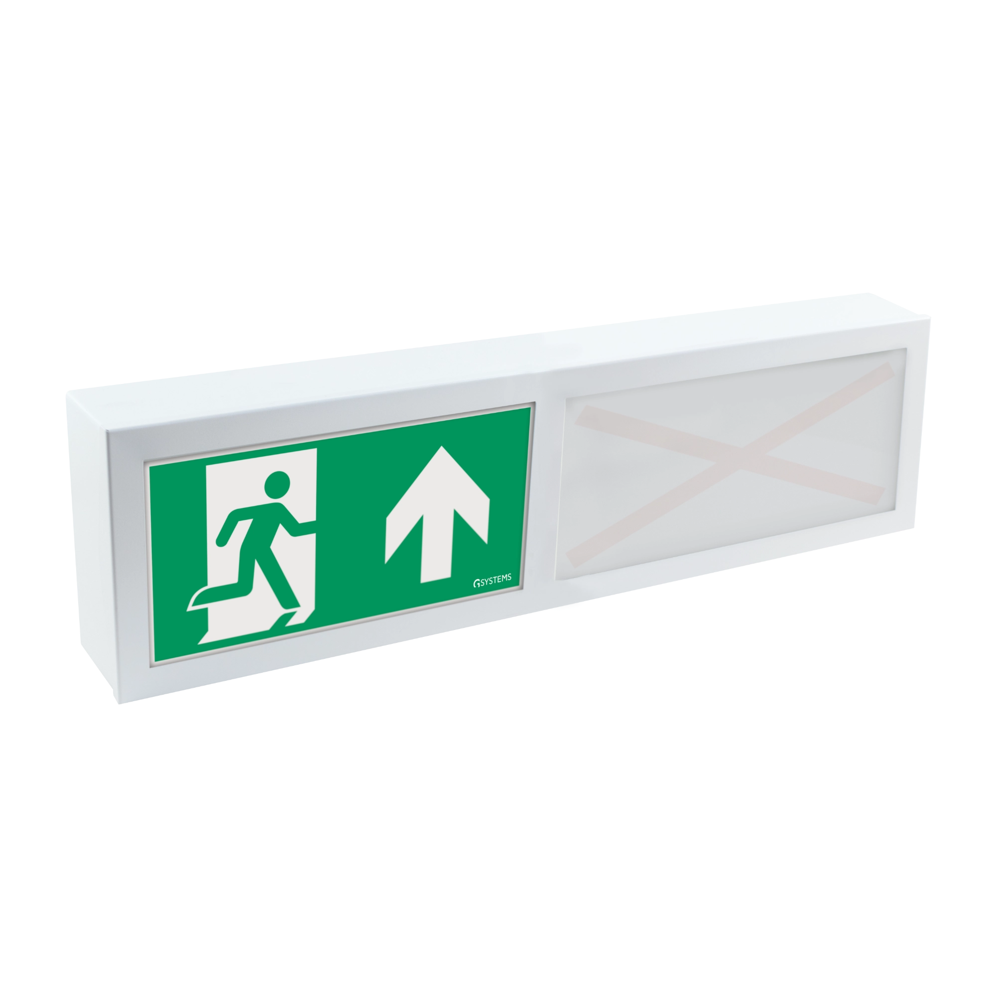For installers, the ALRAKIS exit sign luminaire offers a clear installation logic through wall-mounted design. The luminaire is installed along designated escape routes and integrated into the central emergency lighting system. The arrow direction is defined per project, allowing precise alignment with the planned escape route layout. The sheet steel housing ensures a durable construction for long-term use.